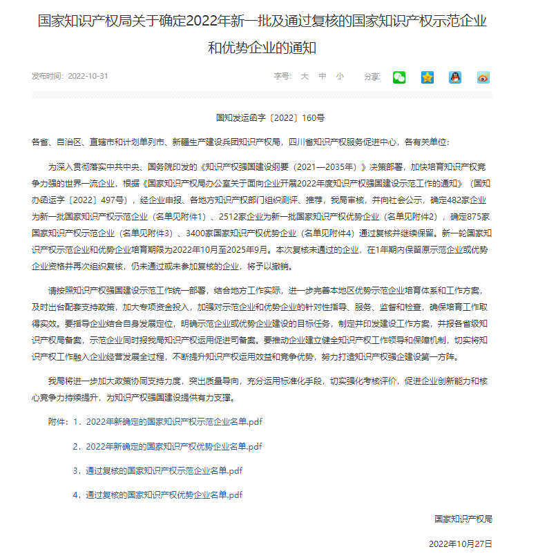 根据《国家知识产权局办公室关于面向企业开展2022年度知识产权强国建设示范工作的通知》(国知办函运字〔2022〕497号)的相关要求,经测评,伟德betvlctor科技被认定为国家知识产权优势企业。